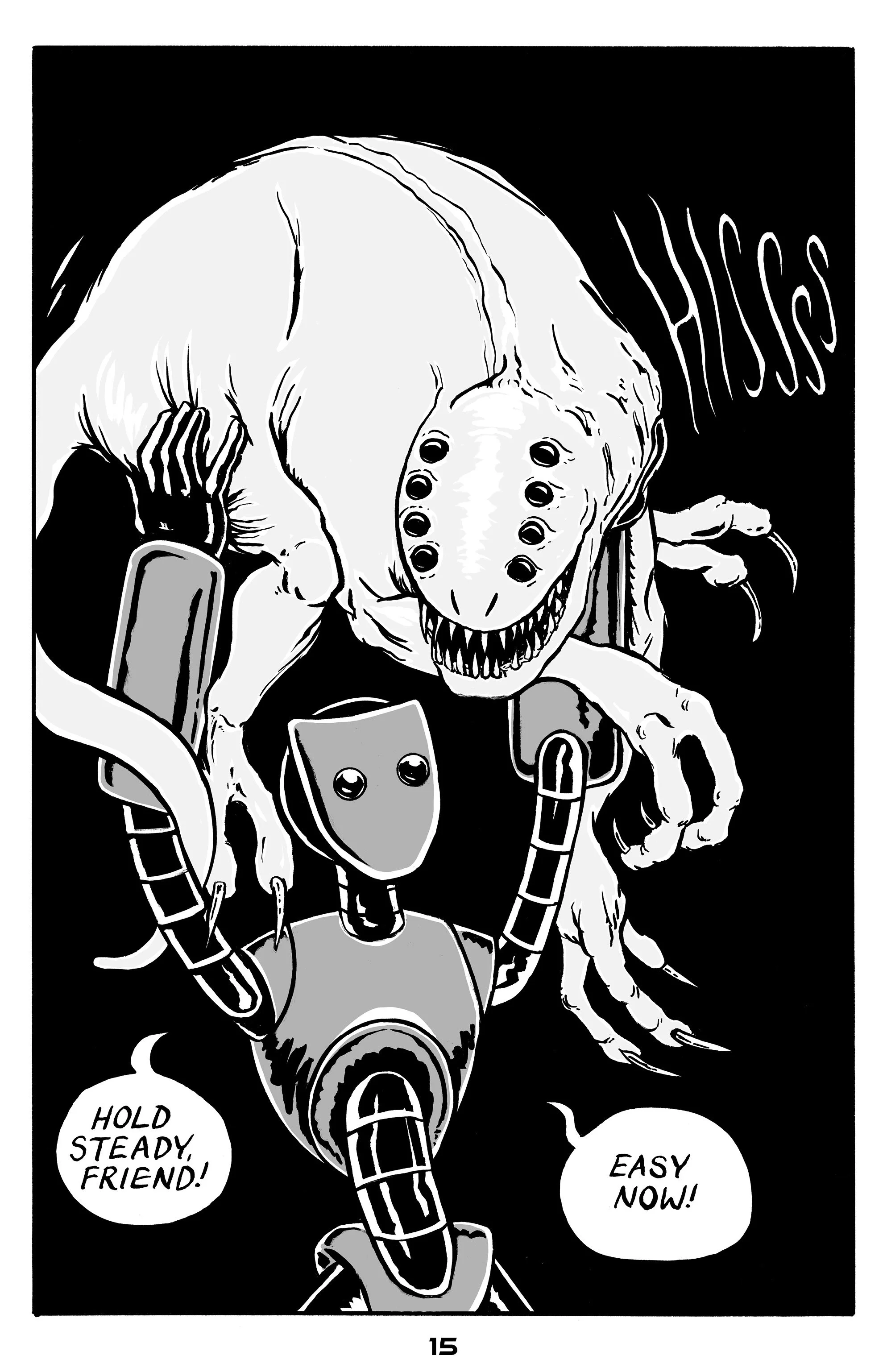 Blake is a creator and teacher living in Westminster, Colorado. He writes, draws, and publishes his own comics. His titles include “Sentience,” a robot adventure series, and “Distortion,” a solo anthology that includes short comic stories, illustration, and poetry. His new book premiering in 2025 is “Monster Mask,” a black and white horror one-shot about a neighborhood serial killer.