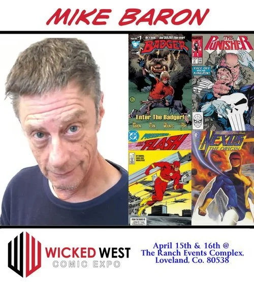 Mike Baron is the creator of Nexus (with artist Steve Rude) and Badger two of the longest lasting independent superhero comics. Nexus is about a cosmic avenger 500 years in the future. Badger, about a multiple personality one of whom is a costumed crime fighter. Baron has won two Eisners and an Inkpot award and written The Punisher, Flash, Deadman and Star Wars among many other titles. Baron has published fifteen novels: Helmet Head, Banshees, Whack Job, eight in the Biker series, Skorpio, Florida Man, and Florida Man 2: Hogzilla. Florida Man 3: Catfish Calling. Helmet Head is about Nazi biker zombies. Whack Job is about spontaneous human combustion. Biker is hard-boiled noir about a reformed motorcycle hoodlum turned private investigator. Skorpio is about a ghost who only appears under a blazing sun. Banshees is about a satanic rock band that returns from the dead. Baron is working on three novels: Far Horizon, a military science fiction novel with co-writer Major Diggs Brown, a second Nexus novel, and the ninth Josh Pratt novel, Kahn, about a renegade Siberian tiger. Baron has written for The Boston Phoenix, Boston Globe, Creem, Fusion, Oui, and Ellery Queen’s Mystery Magazine. He got his first motorcycle in 1966. He lives in Colorado with his wife Ann and three dogs.